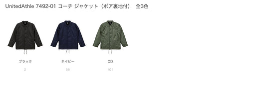 UnitedAthle 7492-01 コーチ ジャケット(ボア裏地付) | プリントブレイン